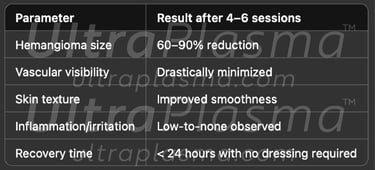 UltraPlasma™ transforms hemangioma therapy through plasma-guided vascular oxidation, smart thermal control, and multigas modulation. It offers a minimally invasive, fast-recovery alternative to lasers and surgery, making it ideal for dermatologists, pediatric cases, and vascular specialists aiming for precision without scarring.